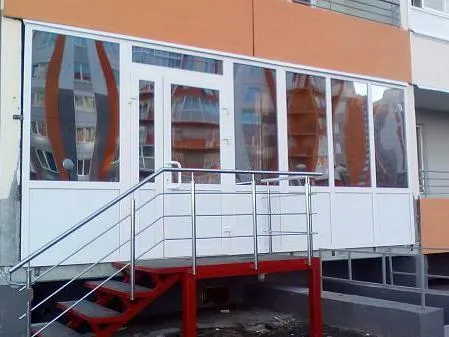 Конструктив: Часто представляют собой комбинацию прочного ПВХ-профиля, сэндвич-панелей, стеклопакетов и ПВХ-панелей. Могут быть пристроенными, включать козырек (онинг), ступени, перила.