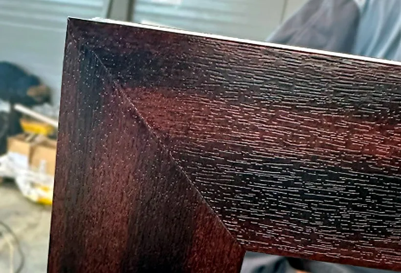 Результат: Рисунок ламинации или цвет переходит с одного профиля на другой без разрыва, создавая ощущение цельной, дорогой конструкции.