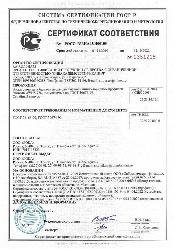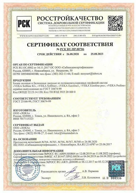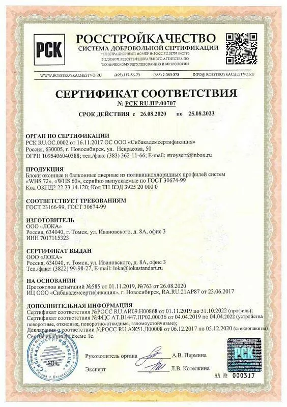 Эти документы – ваша уверенность в том, что окна LOKA: